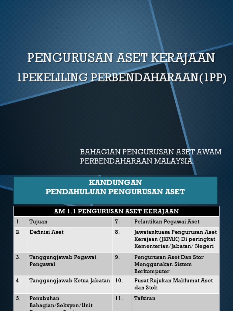 1Pekeliling Perbendaharaan (1Pp) Pdf : Pekeliling perbendaharaan ini bertujuan untuk memperkemas dan memantapkan peraturan pengurusan aset alih kerajaan.