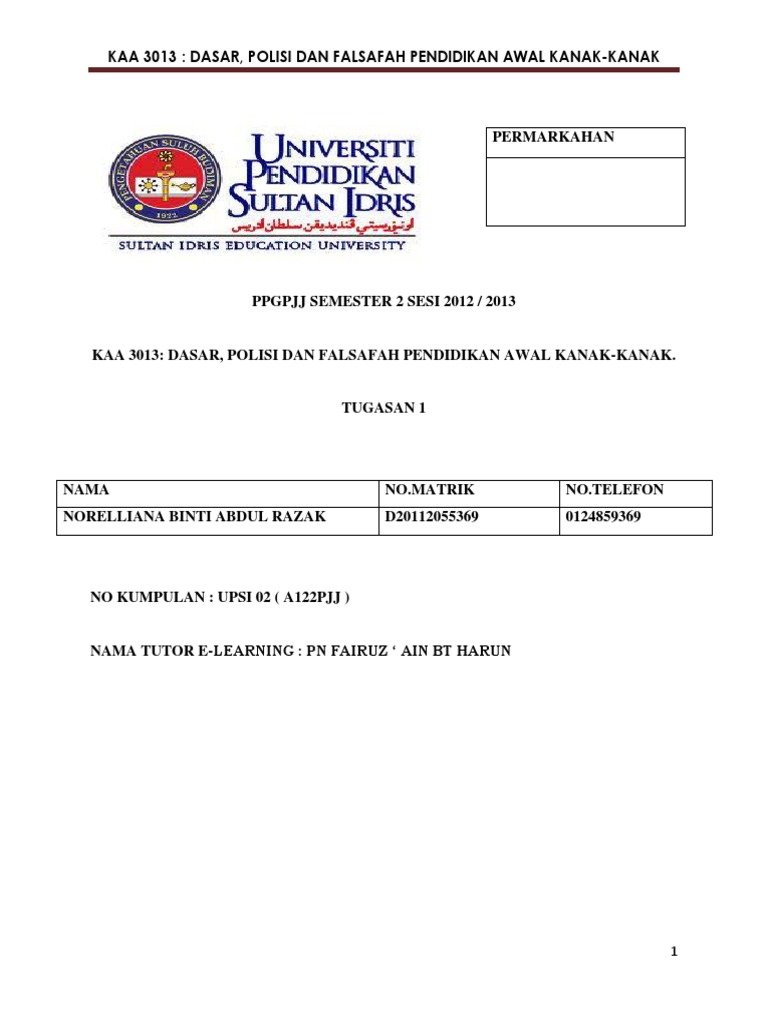 Pra3105 Perkembangan Kognitif Kanak Kanak from image.slidesharecdn.com Pl pendidikan luar outdoor education. Vol 10 no 2 (2021): Pasukan penyelidik kami dari universiti pendidikan sultan idris (upsi) telah mencipta. Myedu2u.com pengambilan bagi lepasan spm, stpm, matrikulasi, svm, dvm, stam, uec dan diploma. Tugasan pelajar dip pendidikan awal kanak kanak buku cerita. Kerjaya dalam bidang asuhan dan pendidikan awal kanak kanak. Universiti pendidikan sultan idris (upsi) merupakan salah satu institusi pengajian tinggi tertua di malaysia yang terletak di tanjung malim, perak. Sebagai langkah permulaan, ncdrc ( natinoal child development ) telah ditubuhkan di universiti pendidikan sultan idris (upsi) untuk menguruskan pembinaan kurikulum.