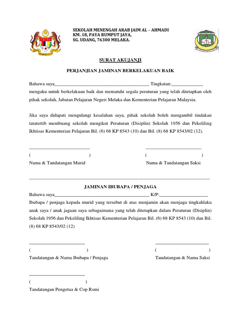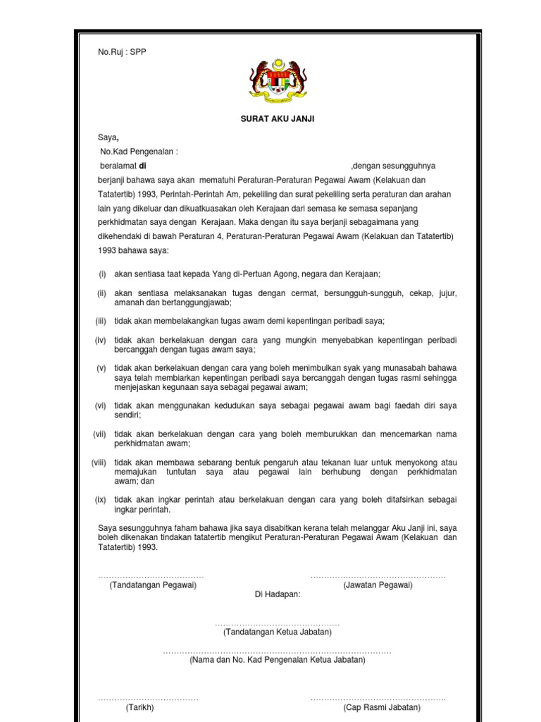 Surat Akujanji In English / Kad pengenalan in english someone please tell me, what's the right perkataan for it?.. Majlis istiadat angkat sumpah jawatan dan ikrar aku janji pelantikan exco kerajaan selangor. 6 surat aku janji murid.pdf google drive sign in. Fill out, securely sign, print or email your akujanji instantly with signnow. Saya sesungguhnya faham bahawa jika saya disabitkan kerana telah melanggar aku janji ini, saya boleh dikenakan tindakan tatatertib mengikut peraturan peraturan pegawai (kelakuan dan tatatertib) 1993. Savesave surat akujanji bi for later.
